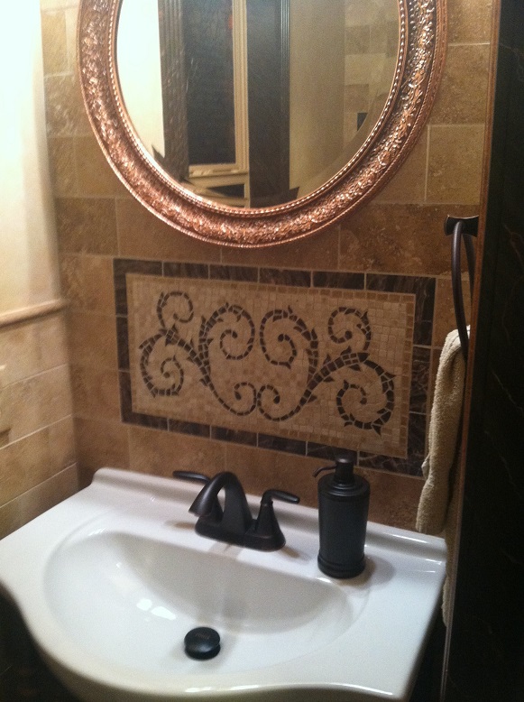 I cut and shape all the marble pieces by hand and either thin set to a hardybacker board or they are applied to a fiberglass mesh to be applied to a substraight at a later time