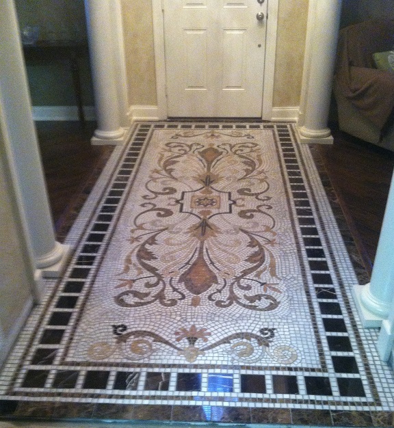 All My Mosaics are made with hand cut marble and every marble block piece is hand shaped